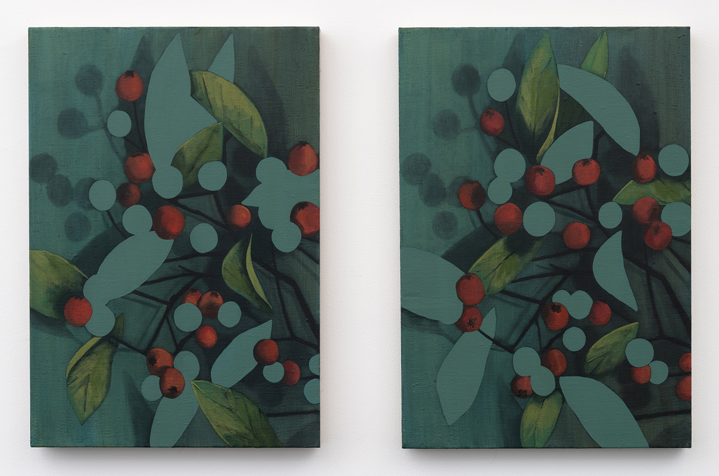 Pair (Indeterminate fruit), 2015, acrylic on linen, diptych (each 23" x 16")